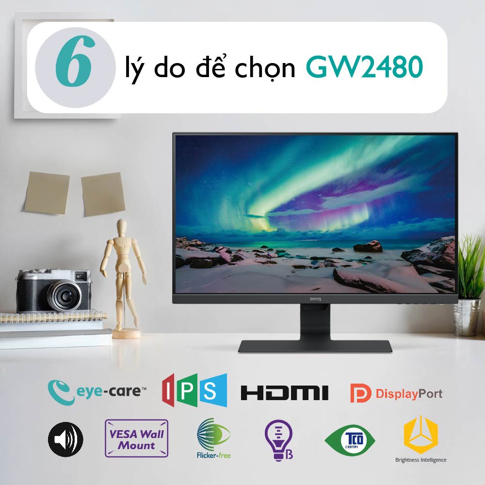 Màn hình máy tính BenQ GW2480 23.8 inch IPS 1080p Bảo vệ mắt, phù hợp Làm việc ở nhà và Giải trí cá nhân