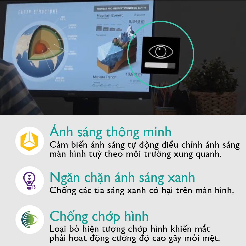🔹 Được thiết kế tạo vẻ đẹp đơn giản tinh tế, màn hình không viền GW2480 24 inch của BenQ có các mặt vát siêu mỏng và cáp nối được giấu kín. Tích hợp các công nghệ Eye-Care™ (Bảo vệ mắt) độc quyền của BenQ như: Low Blue Light (Giảm Ánh sáng xanh) và Flicker-free (Chống chớp hình) giúp bạn luôn thoải mái khi nhìn màn hình. Công nghệ Brightness Intelligence (Ánh sáng Thông minh) hiển thị các chi tiết một cách tinh tế trong điều kiện môi trường nhiều ánh sáng.