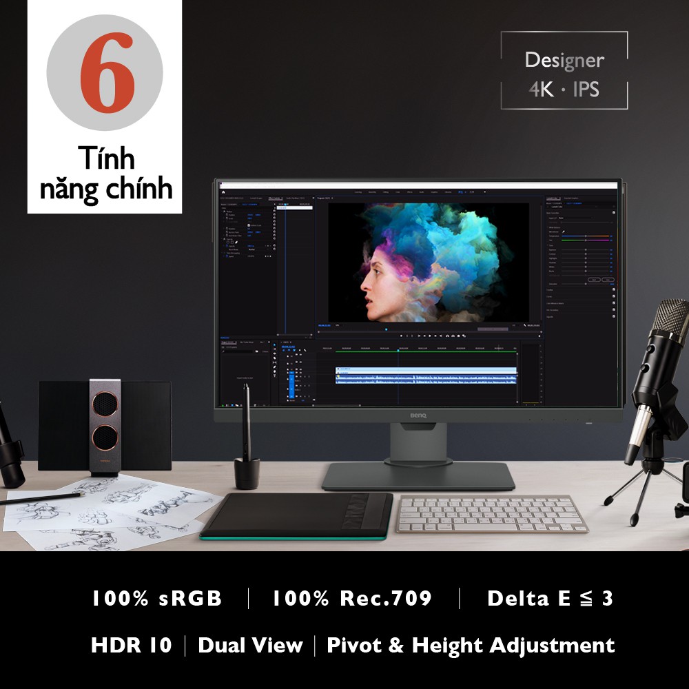 Màn hình máy tính BenQ PD2700U 27 inch 27" 4K UHD 3840x2160 100% Rec.709 sRGB Color Space chuyên Đồ Họa xử lý hình ảnh, design chuyên nghiệp【Tính năng chính】