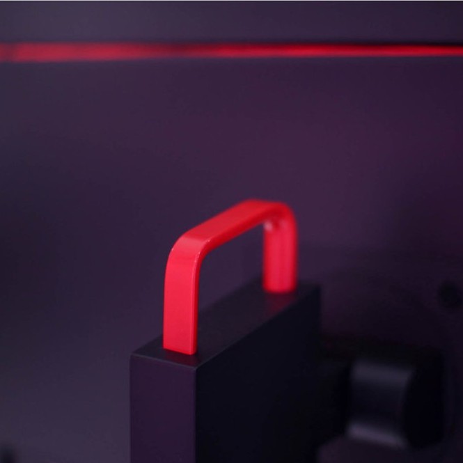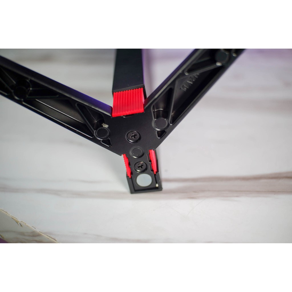 - Phía trên chân đế có 1 tay xách bằng kim loại được sơn màu đỏ, múc đích để xách khi di chuyển màn mình từ điểm này sang điểm khác. Tuy nhiên nó hơi nhỏ, chỉ luồn được khoảng 3 ngón tay