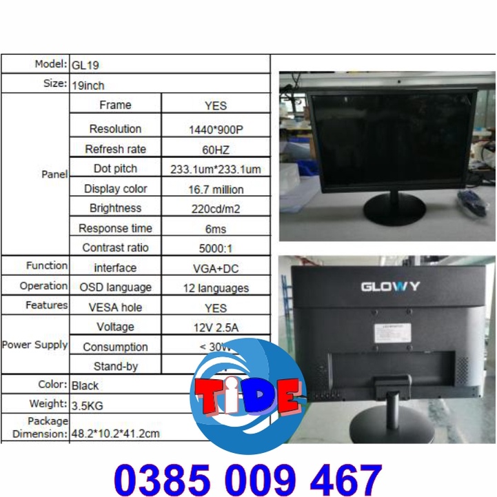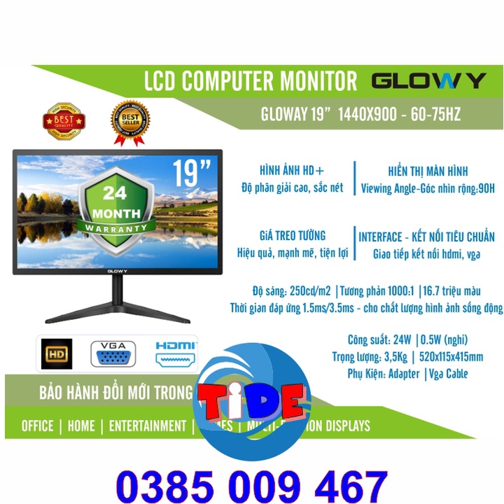 Màn hình máy tính Gloway 19 inch - Full HD 1440 x 900P - Chính hãng – Bảo hành 24 thángTHÔNG TIN SẢN PHẨM: