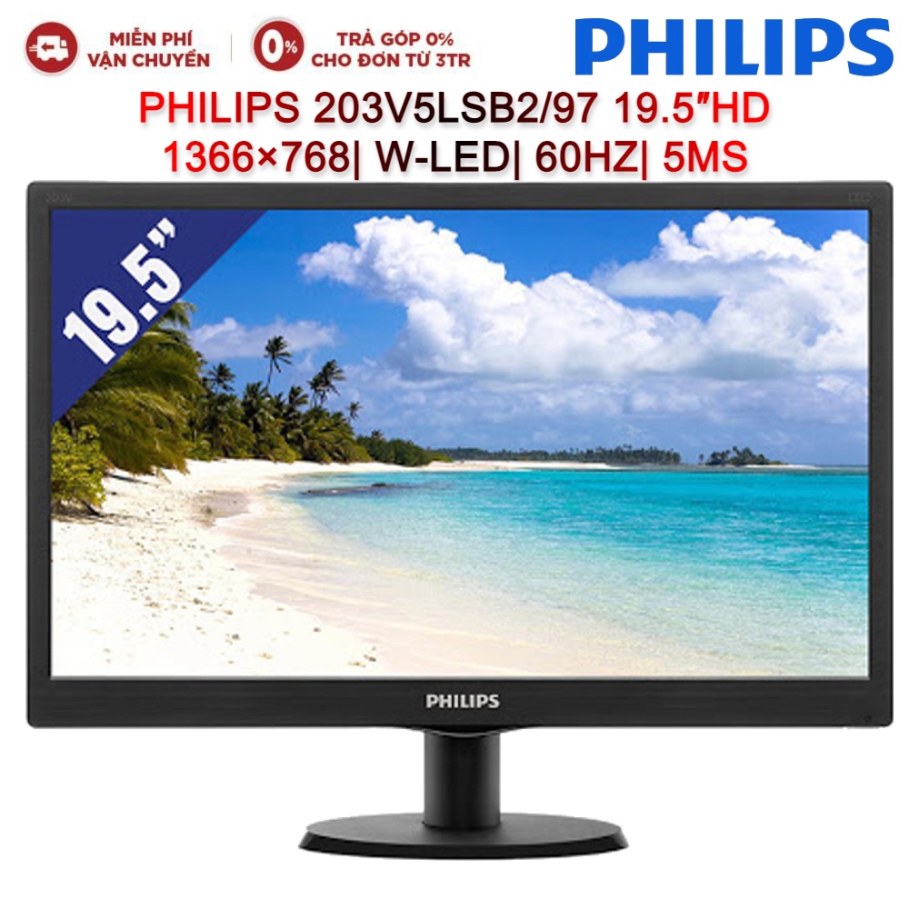 Máy tính & Laptop > Màn Hình || [Mã ELMALL1TR giảm 5% đơn 3TR] Màn hình máy tính LCD PHILIPS 203V5LSB2/97 19.5″HD 1366×768| W-LED| 60HZ| 5MSCòn hàng