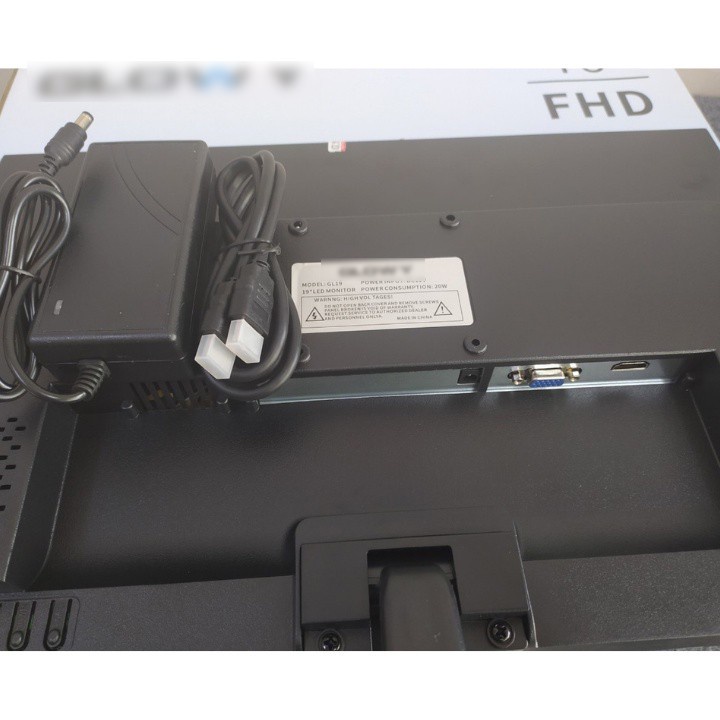 -Phụ Kiện, Cổng kết nối : Màn hình Glowy được trang bị 2 cổng giao tiếp Hdmi và VGA – những cổng giao tiếp phổ biến và tốt nhất hiện nay, màn có 1 jac căm nguồn vào nhỏ gọn cạnh cổng giao tiếp HDMI và VG.