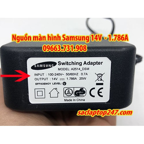 Thông số kỹ thuật trên nguồn màn hình samsung 14V 1.786A chính hãng