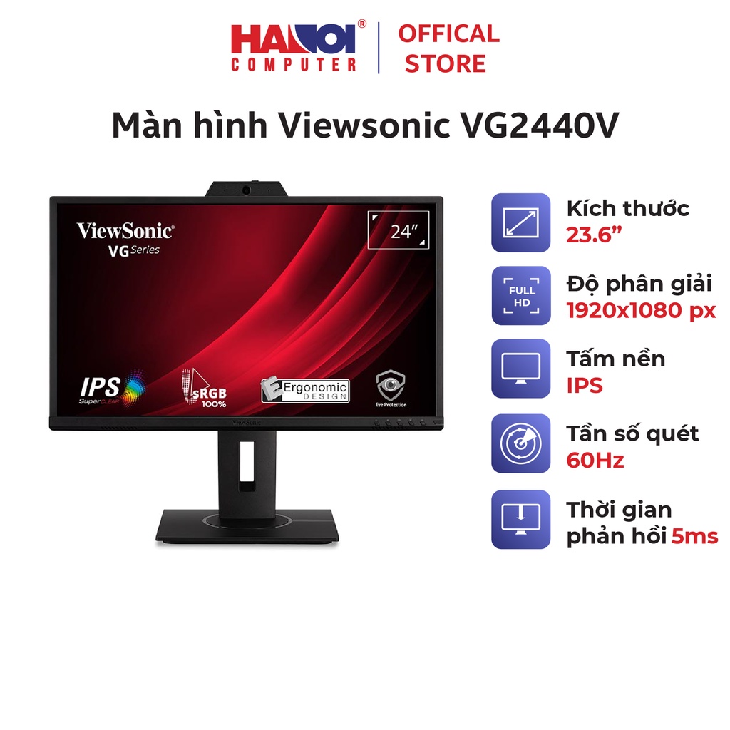 Máy tính & Laptop > Màn Hình || Màn hình Viewsonic VG2440V (23.6 inch/FHD/IPS/60Hz/5ms/250nits/HDMI+DP+VGA/Webcam/Micro)Còn hàng