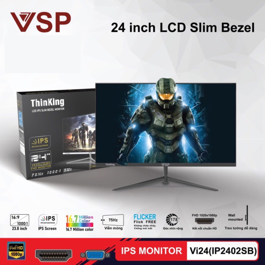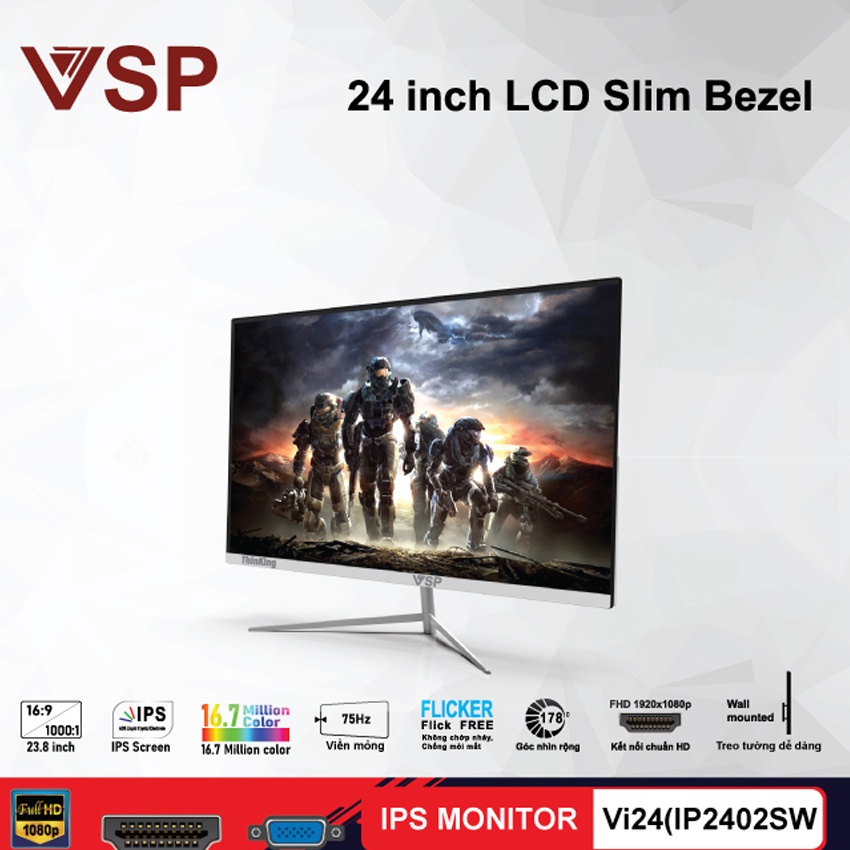 Màn hình LCD VSP Vi24(IP2402SW/B)được trang bị công nghệ IPS màn hình VSP ThinKing có kích thước tấm nền màn hình 23.8, tầng số quét làm tươi 75Hz với hiển thị full HD 1920x1080p. màn hình IPS VSP ThinKing hoàn hảo cho không gian làm việc thiết kế nội thất, lập trình, mã hóa & thiết kế trang web; xem các ứng dụng, bảng tính và nhiều hơn nữa.