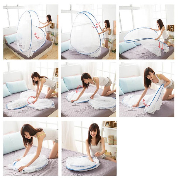 + Màn chụp tự bung thiết kế thông minh và tiện lợi, dễ dàng sử dụng chỉ cần một thao tác đơn giản là chiếc mùng đã được bung ra. Khi không sử dụng bạn có thể thu lại gọn gàng, không chiếm dụng không gian, tiết kiệm diện tích.
