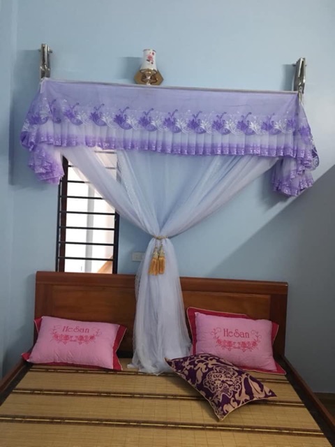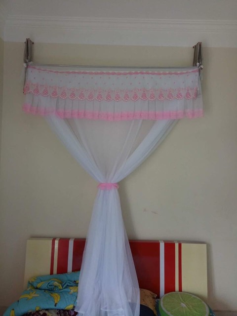 Màn mùng khung xếp gọnMàu trắng phối với các ren màu làm nổi bật hơn