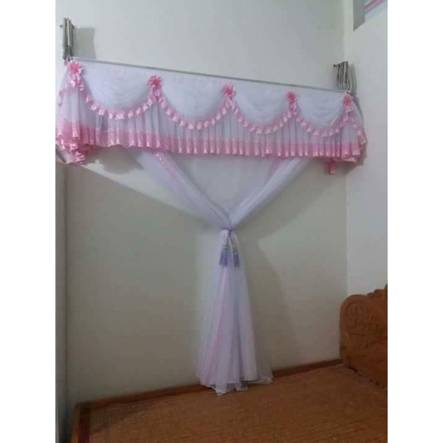Màn mùng khung xếp gọnMàu trắng phối với các ren màu làm nổi bật hơn