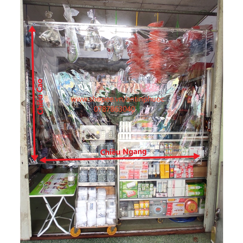 Sản phẩm màn che nhựa PVC trong suốt đa công dụng . Đặt biệt hữu ích trong việc phòng chống dịch ,tạo vách che ngăn trực tiếp giọt bắn .Để quý khách dễ hình dung sản phẩm , sản phẩm được treo lên và tính các chiều kích thước như hình đại diện thứ 2 , đóng khoen ép biên phía trên .