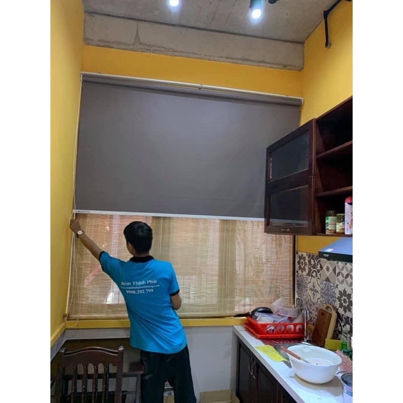 Màn Rèm cuốn che nắng cửa sổ 100% mầu Xám[ Làm theo kích thước yêu cầu] Tặng ngay phụ kiên ốc vít nở.