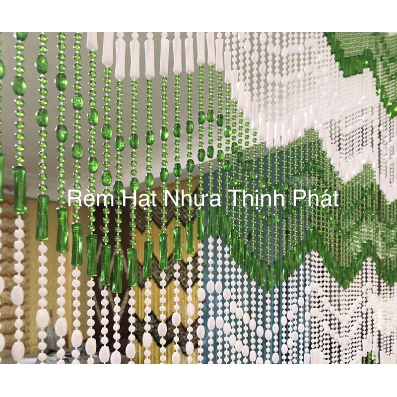 Màn rèm hạt nhựa Trắng Xanh Rêu độc lạ làm dầy sợi giải pháp phong thuỷ tối ưu