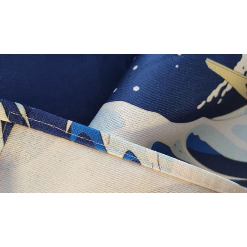 Màn rèm Nhật noren, Chất liệu vải bố cotton in hình ảnh 1 mặt trước,Chính giữa xẻ đôi phù hợp lắp đặt ở các lối đi lại, che chắn,