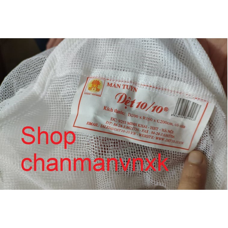 Màn tuyn - sản phẩm của công ty Dệt 10/10 được phân phối chính hãng.Khách hàng có thể kiểm tra hàng thật chính hãng dựa vào tem bảy màu chống hàng giả tai vỏ ngoài và nhãn có mã vạch của nhà máy gắn tại góc màn. Chất tuyn dày dặn, đường may cẩn thận, tỉ mỉ làm nên thương hiệu công ty dệt 10/10.