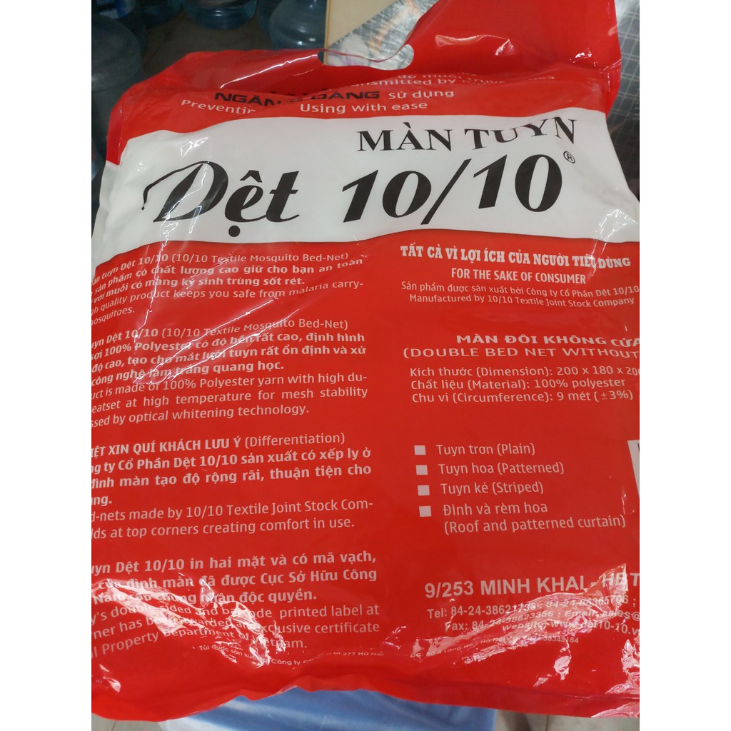 - Màn tuyn - sản phẩm của công ty Dệt 10/10 chính hãng,tại vỏ ngoài và nhãn có vạch của nhà máy gắn tại góc màn.