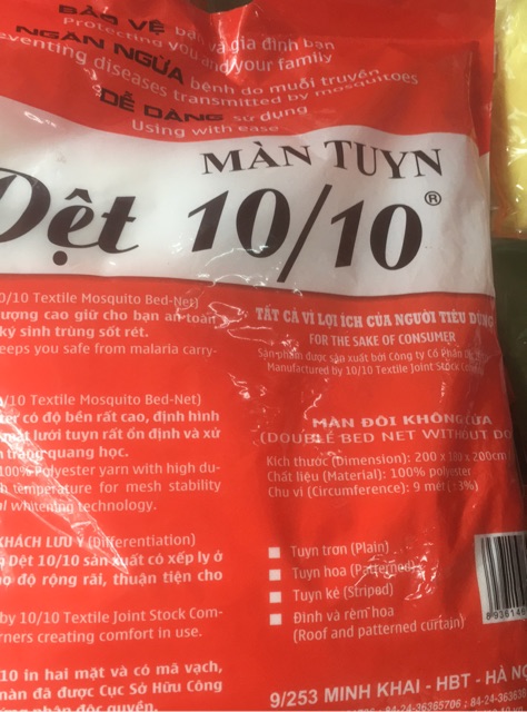 Màn tuyn dệt 10/10 chính hãng (1m2,1m6,1m8,2m2)