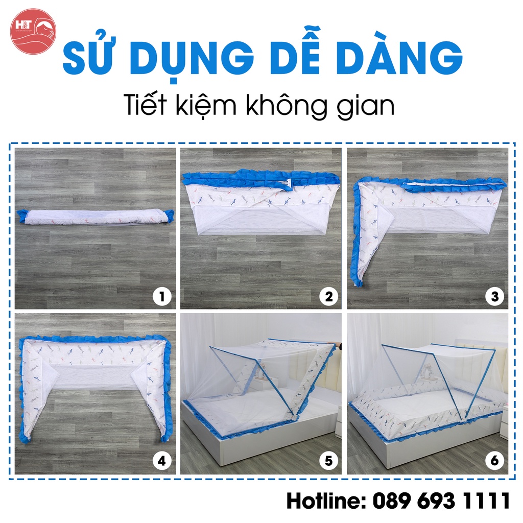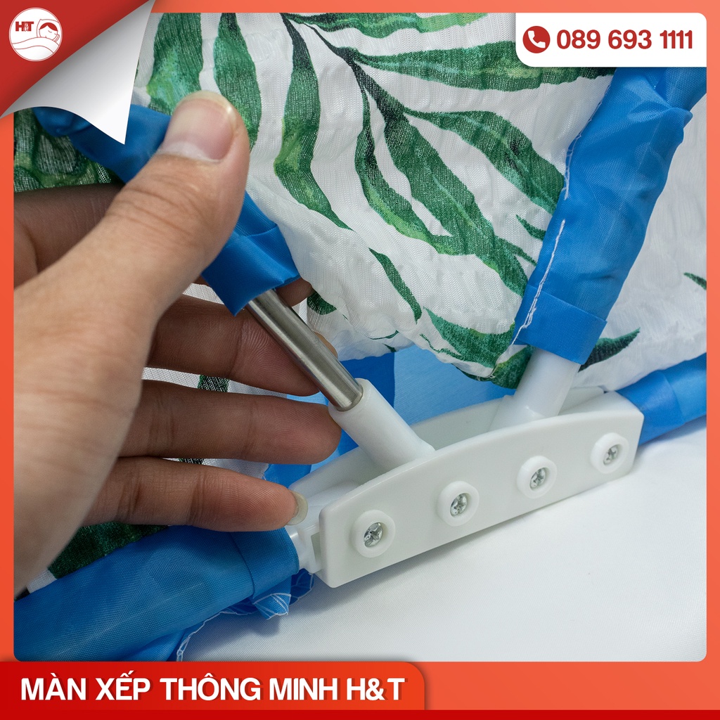 Màn Xếp Gấp Gọn H&T khung inox ,Màn Xếp Thông Minh , Màn công nghệ Cải Tiến Độc Quyền Từ Thương Hiệu HT Chăn Ga Gối