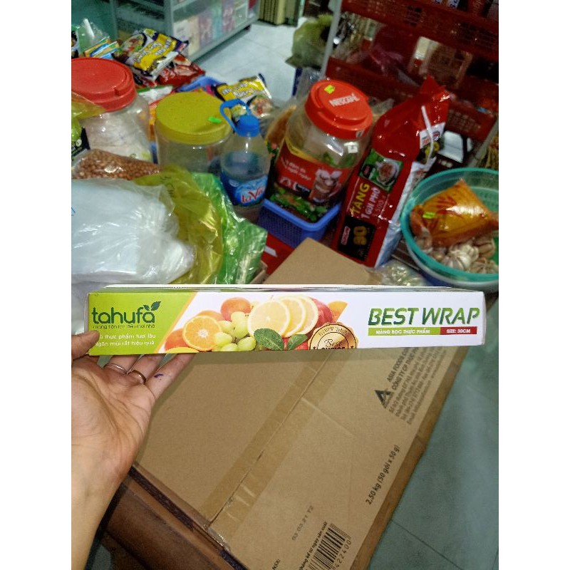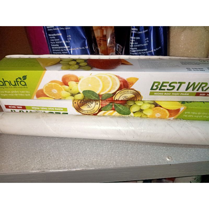 Màng bọc thực phẩm tiện dụng để bọc thức ăn, bảo vệ thực phẩm trước ruồi bụi,...Hạn sử dụng: 1 năm