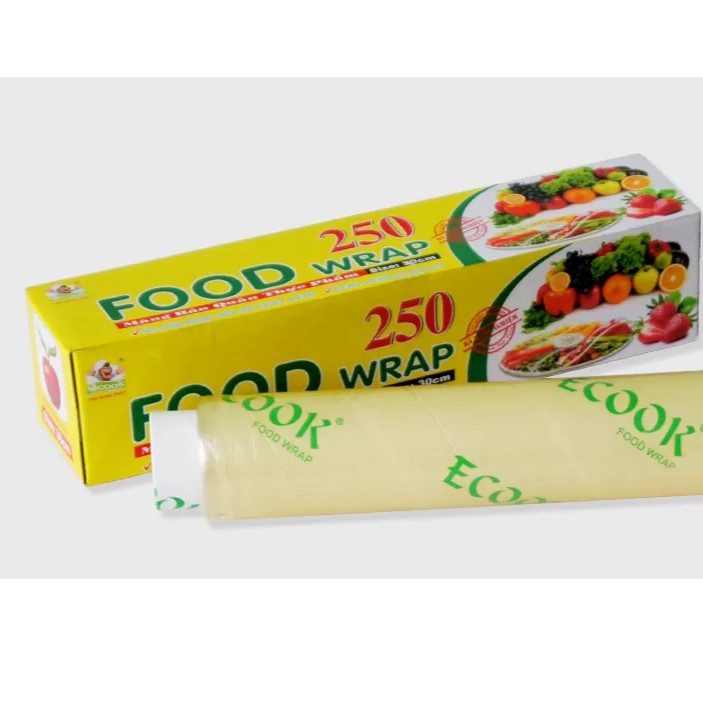 Màng bọc thực phẩm ECOOK FOOD WRAP P250 được sản xuất từ nhựa PVC không lẫn tạp chất, hóa chất độc hại, đảm bảo an toàn cho sức khỏe người sử dụng. Sản phẩm có độ đàn hồi tốt, khả năng chịu nhiệt cao từ -60 độ C đến 130 độ C, biên độ nhiệt lớn sẽ giúp thực phẩm luôn được bảo quản tốt nhất khi đặt trong tủ lạnh hay cho vào lò vi sóng.