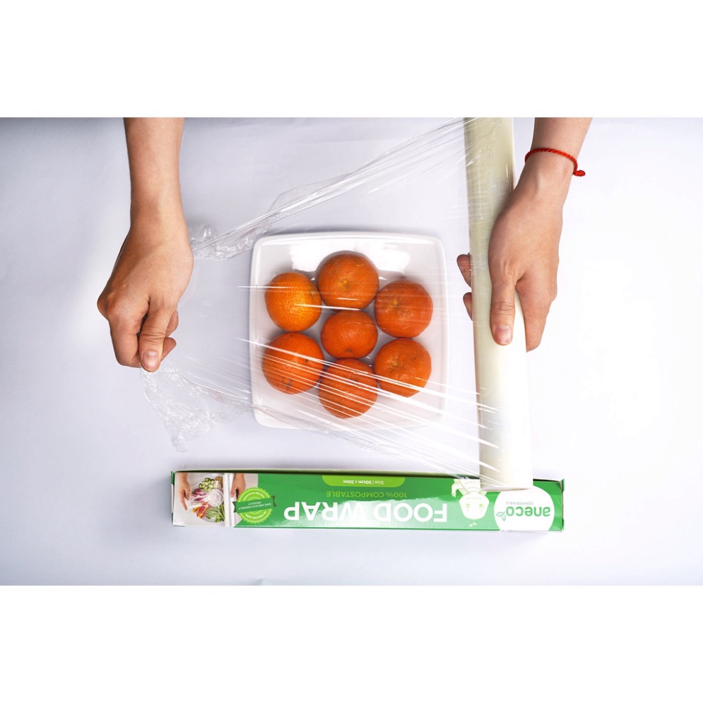 Màng bọc thực phẩm ANECO– 100% phân hủy sinh học: được làm từ nguyên liệu sinh học PBAT, màng bọc thực phẩm AnEco có khả năng phân hủy hoàn toàn trong vòng 6 – 12 tháng thành mùn, nước, CO2 trong điều kiện chôn lấp tự nhiên.