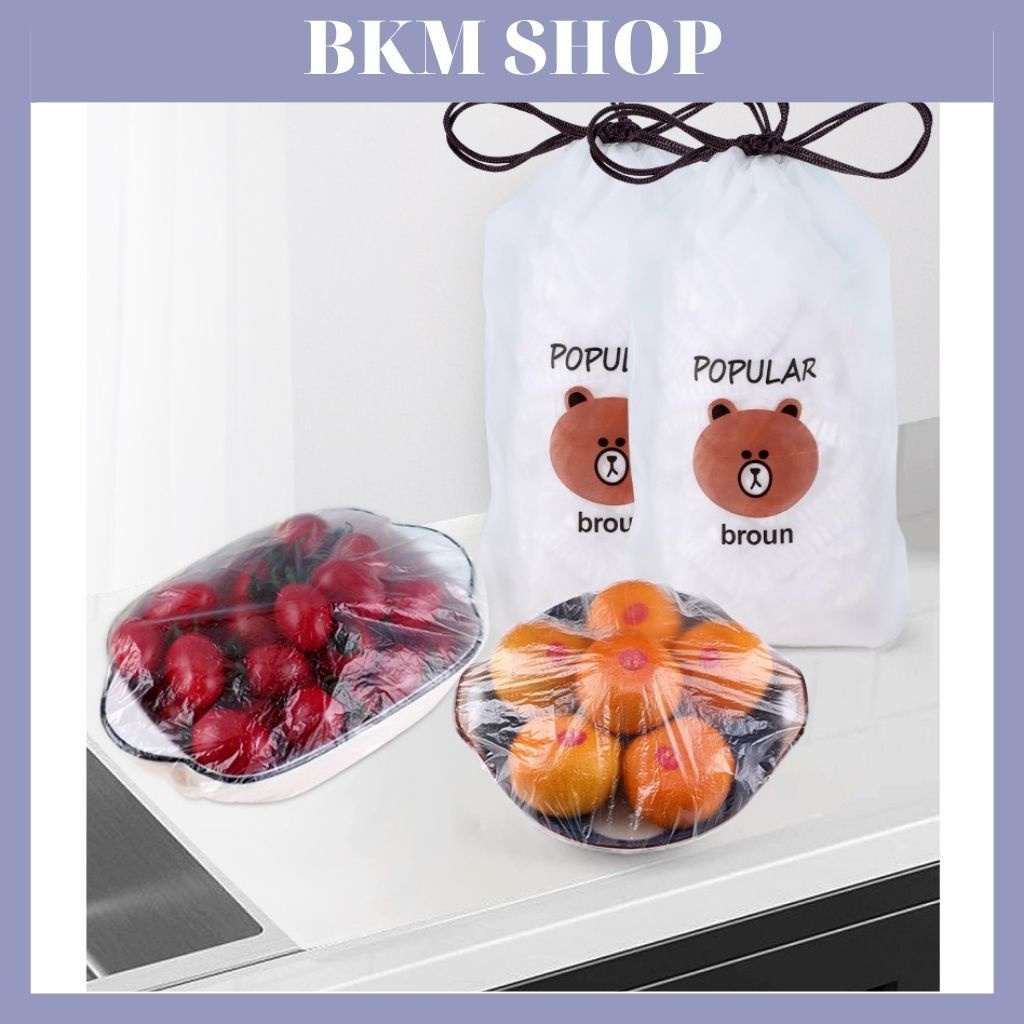 Màng bọc thực phẩm ( bịch 100 màng bọc ) | Màng bọc siêu co giãn giúp bảo quản tốt đồ ăn vừa mọi loại bát đĩaTúi 100 màng bọc thực phẩm co giãn hình túi gấu