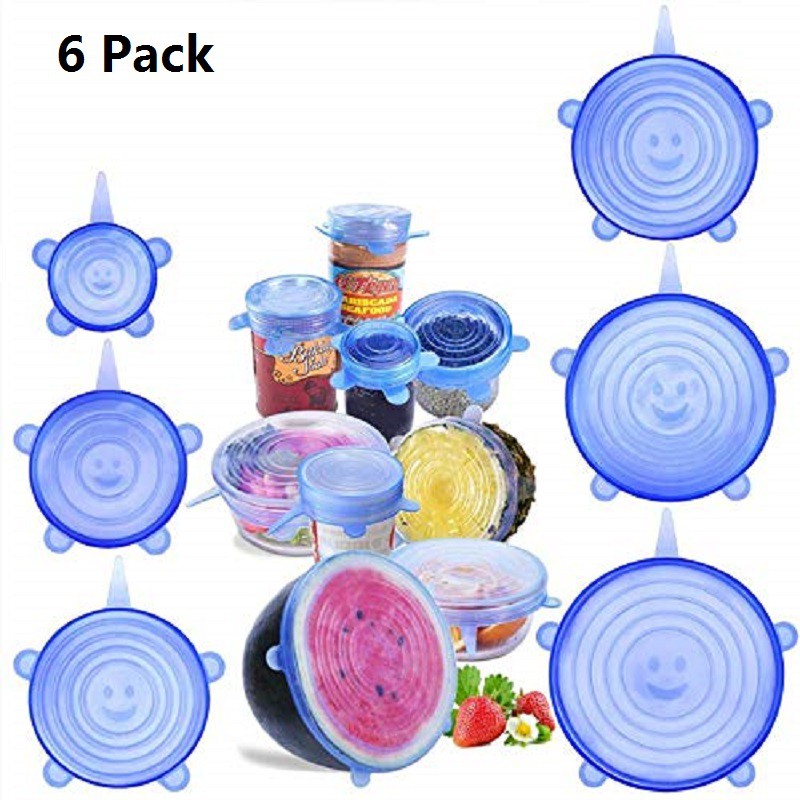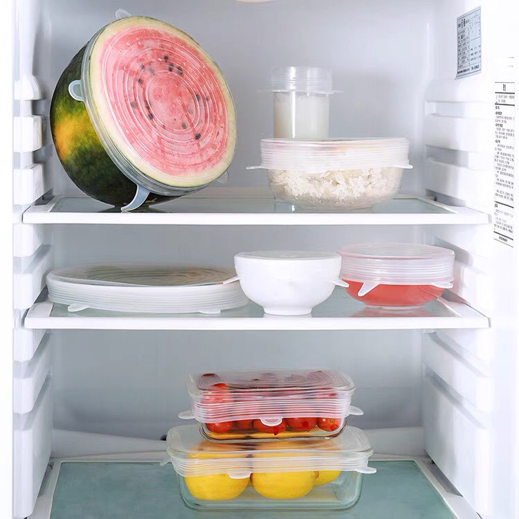 Màng Bọc Thực Phẩm Bộ 6 Nắp Silicon Dẻo Dai Đa Năng Bọc Chén Bát Thực Phẩm Cần Bảo Quản Trong Tủ Lạnh
