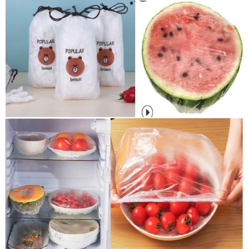 Màng Bọc Thực Phẩm Bo Chun sét 100 chiếc Có Thể Tái Sử Dụng(Tặng Kèm Túi Đựng Mặt Gấu)