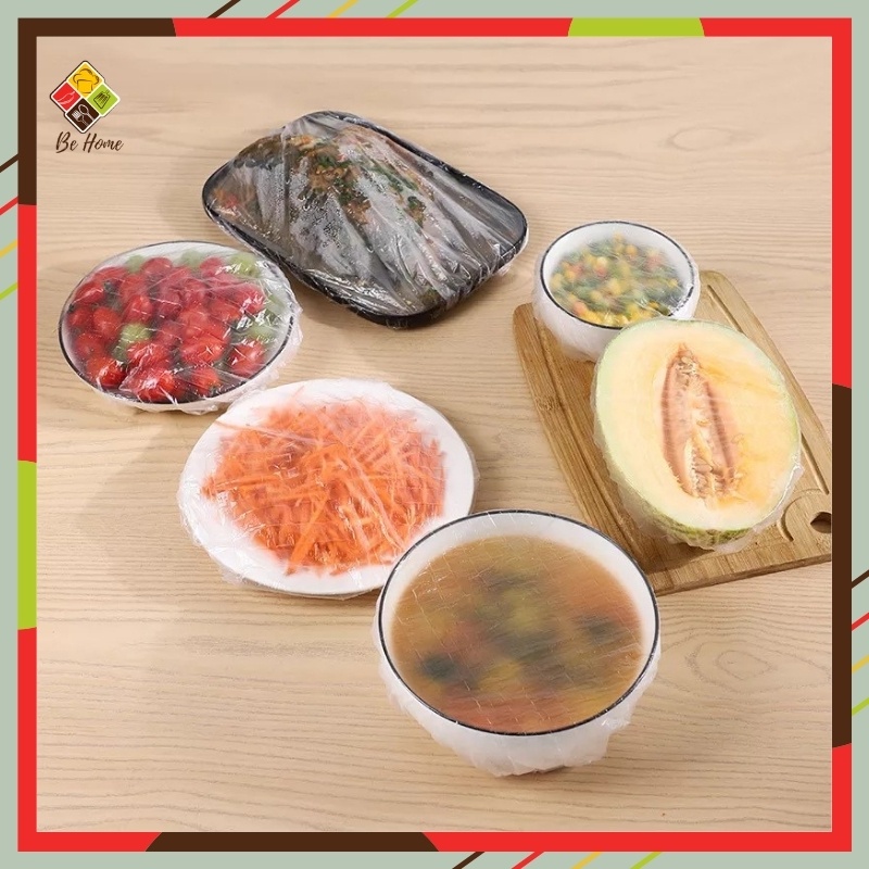 Màng Bọc Thực Phẩm co dãn siêu bền BEHOME Màng Bọc Đồ Ăn Có Chun Co Dãn Túi Gấu [Gói 100c]