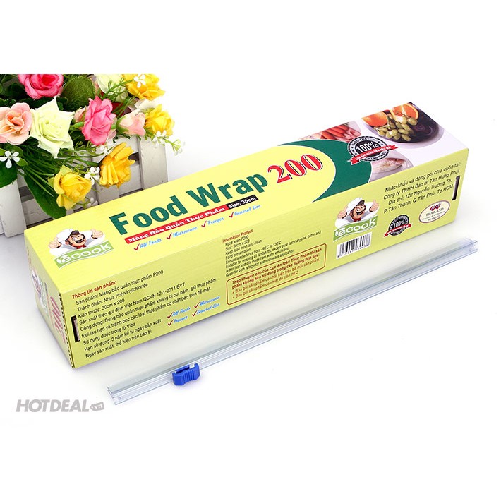 - Màng bọc thực phẩm thương hiệu Food Wrap giúp bảo quản các loại thực phẩm, trái cây, thịt cá… tươi lâu, không bị bay, ám mùi hay khô, mất nước khi bỏ vào tủ lạnh hoặc bọc thức ăn trước khi dọn trong đám tiệc.