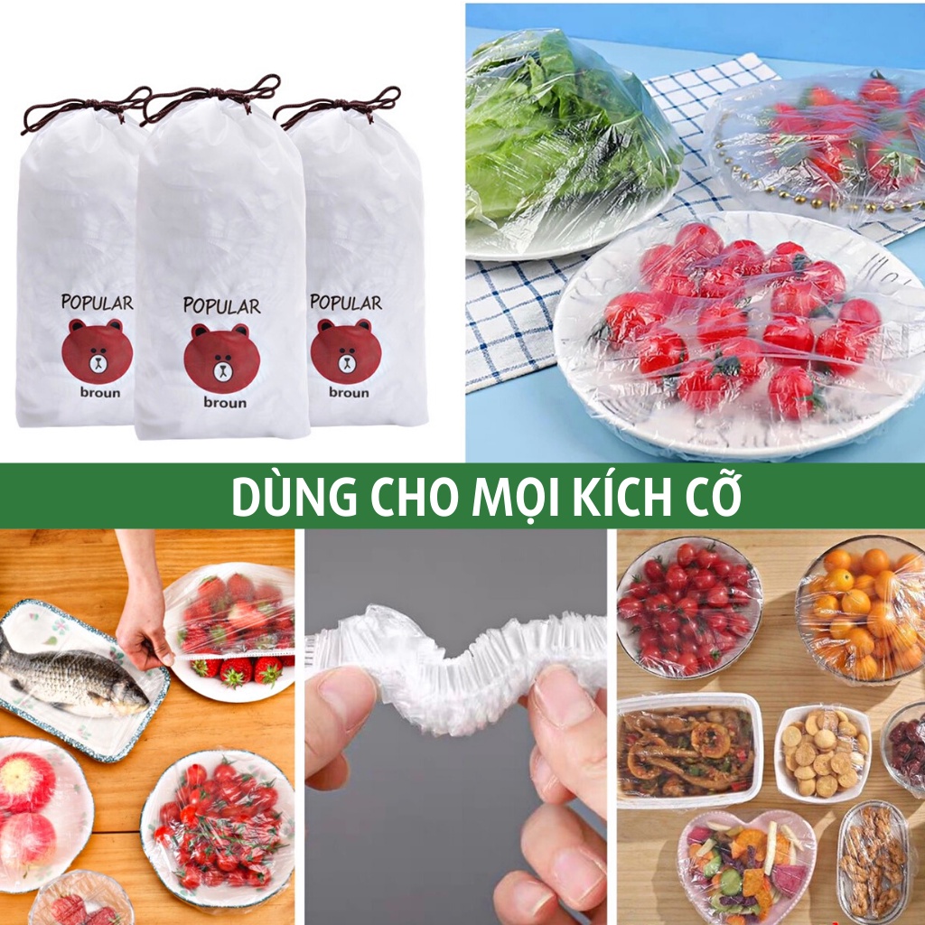 Màng bọc thực phẩm co giãn có chun túi gấu an toànMàng bọc thực phẩm an toàn được sử dụng rất phổ biến. Đặc biệt là loại màng bọc có chun, sử dụng dễ dàng trong gia đình. Với 100 chiếc và có thể tái sử dụng giúp tiết kiệm chi phí và rất vệ sinh, an toàn thực phẩm.