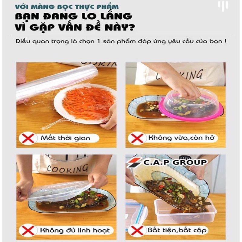 ✔ Tạm biệt màng bọc thực phẩm thông thường gây bất tiện, mất thời gian, không có tính linh hoạt.
