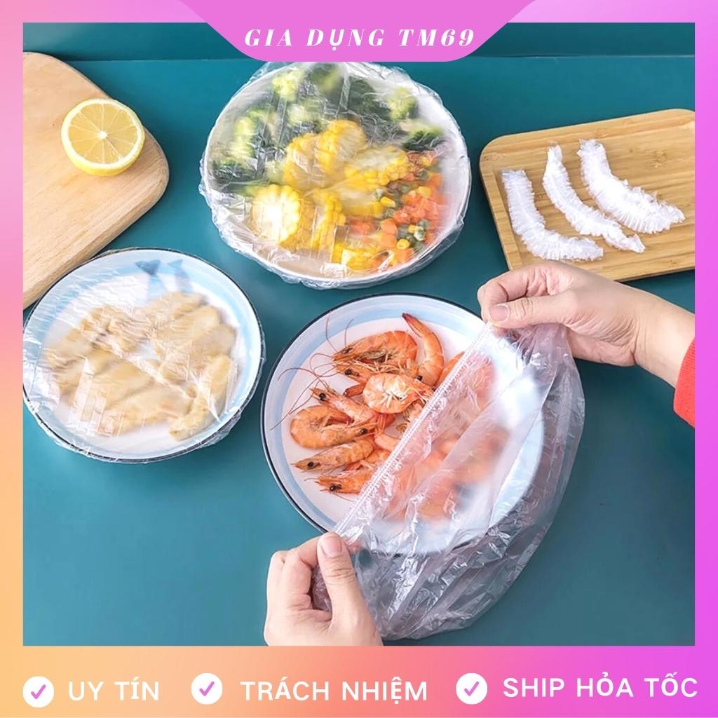 Màng Bọc Thực Phẩm Co Giãn Có Chun Nilon Che Chắn Bụi Hình Túi Gấu Set 100 Cái Bo Đồ Ăn Đa Năng