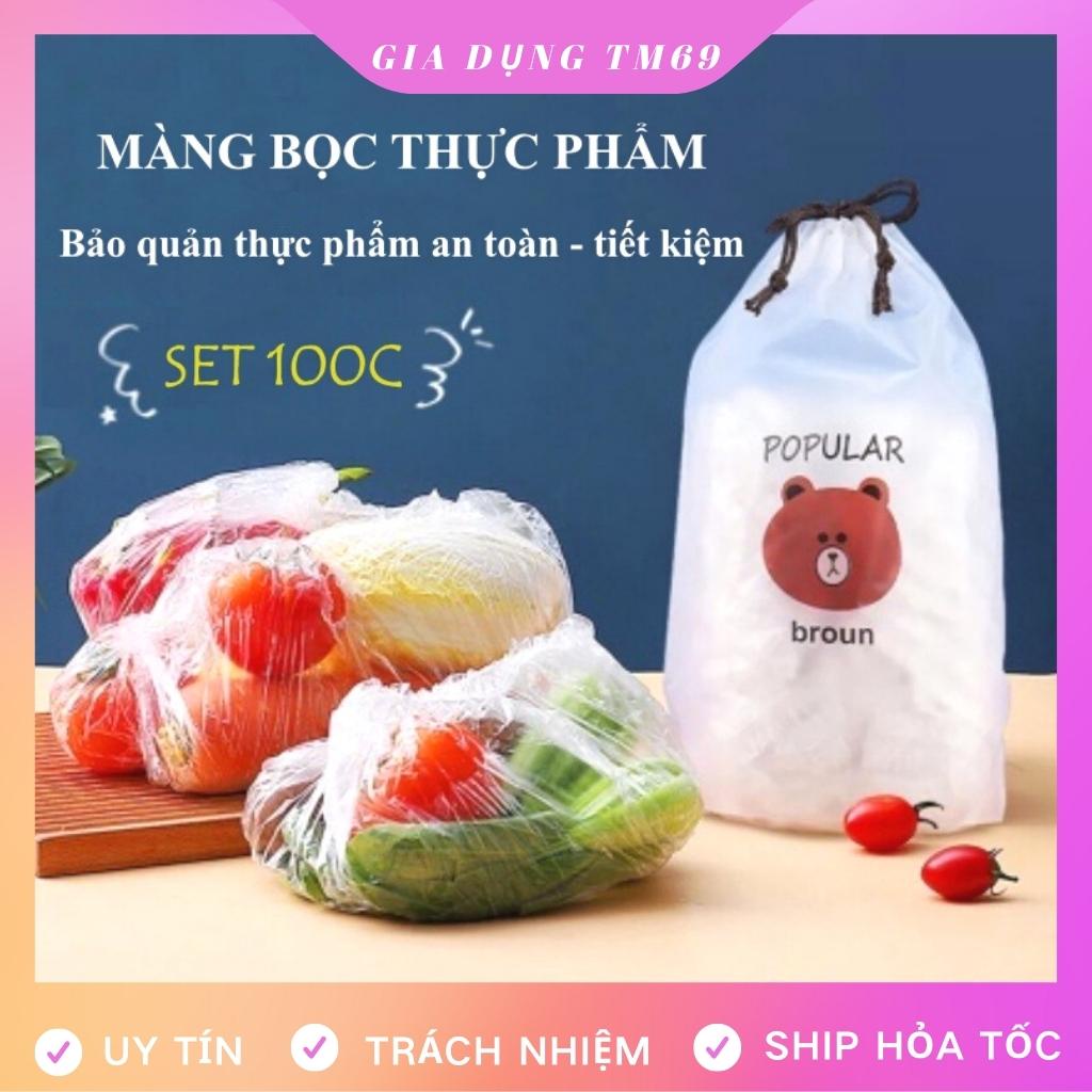 Màng Bọc Thực Phẩm Co Giãn Có Chun Nilon Che Chắn Bụi Hình Túi Gấu Set 100 Cái Bo Đồ Ăn Đa NăngSản Phẩm :
