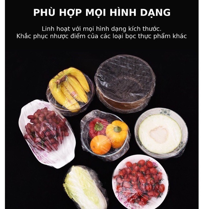 Màng Bọc Thực Phẩm Co Giãn Siêu Dai Có Chun - Túi Gấu Set 100 Chiếc Bảo Quản Thực PhẩmDuashop