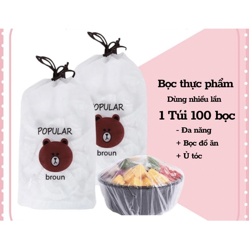 Màng Bọc Thực Phẩm Co Giãn Siêu Dai Có Chun Hình Túi Gấu An Toàn Vệ Sinh (Set 100 cái)