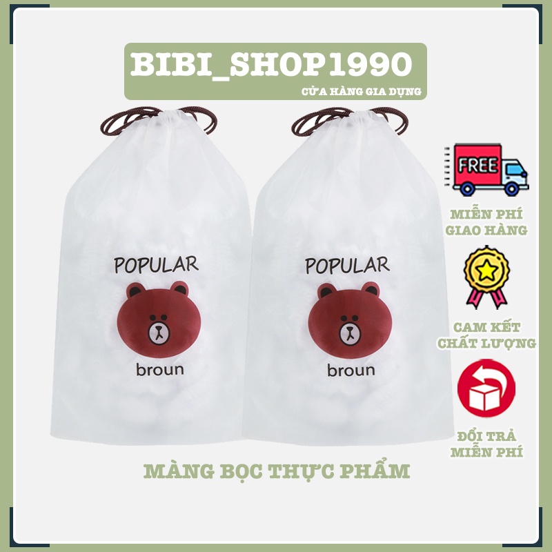 Màng bọc thực phẩm co giãn siêu dai có chun hình túi gấu set 100 chiếc - Mũ trùm tóc nilon dùng 1 lần (TNL100)