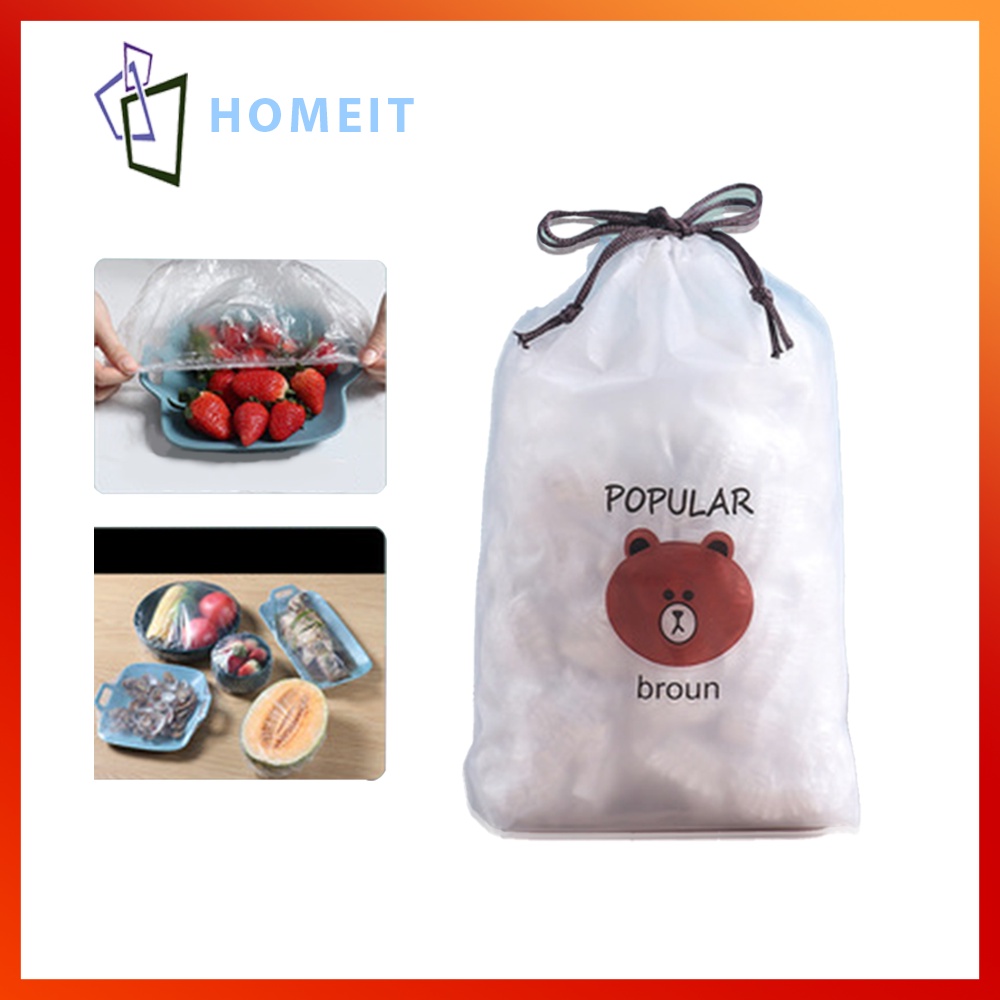 Màng bọc thực phẩm đa năng có chun co giãn thông minh ( Set 100 cái tặng kèm túi gấu dễ thương)