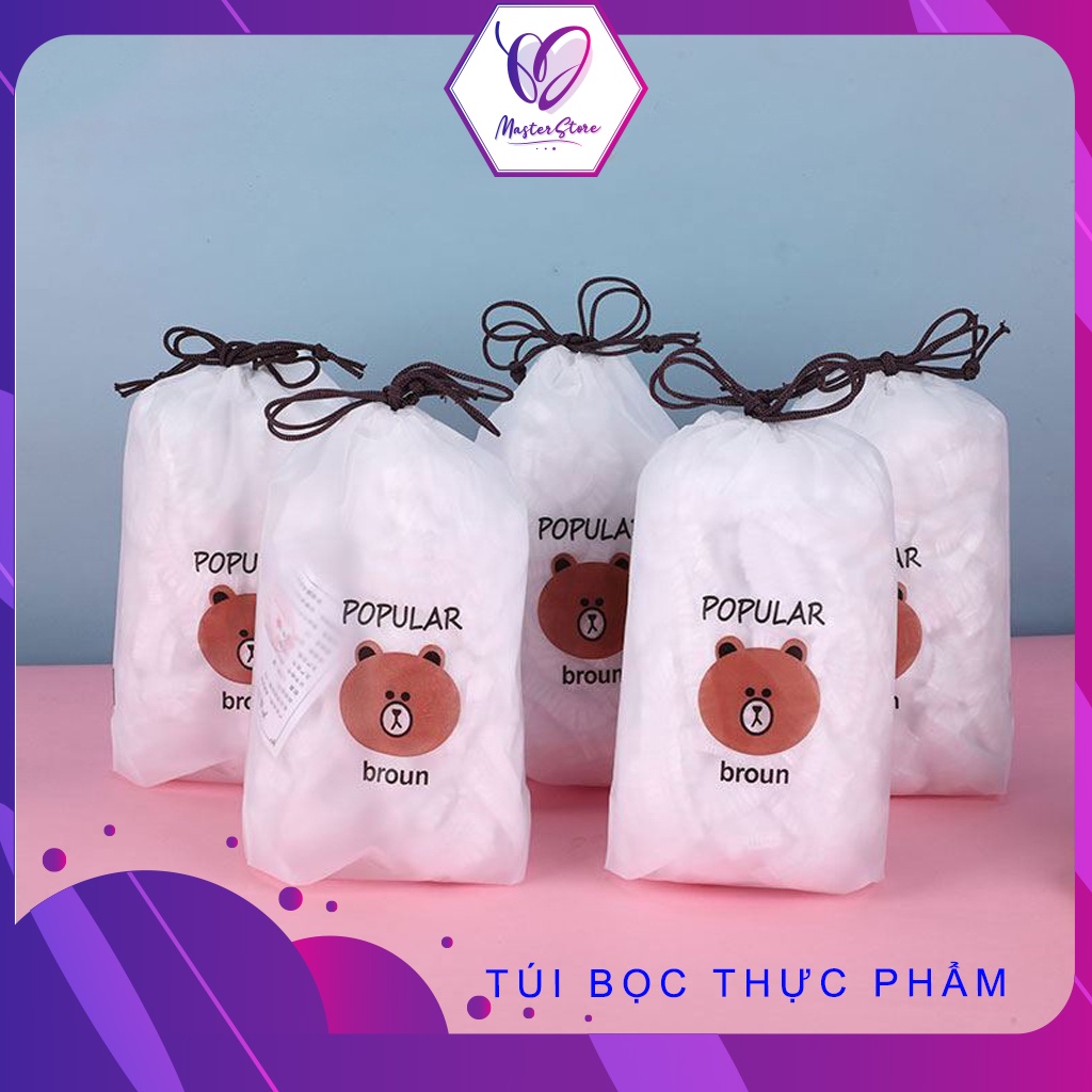 Màng bọc thực phẩm đa năng có chun co giãn, set 100 cái kèm túi gấu Master Store
