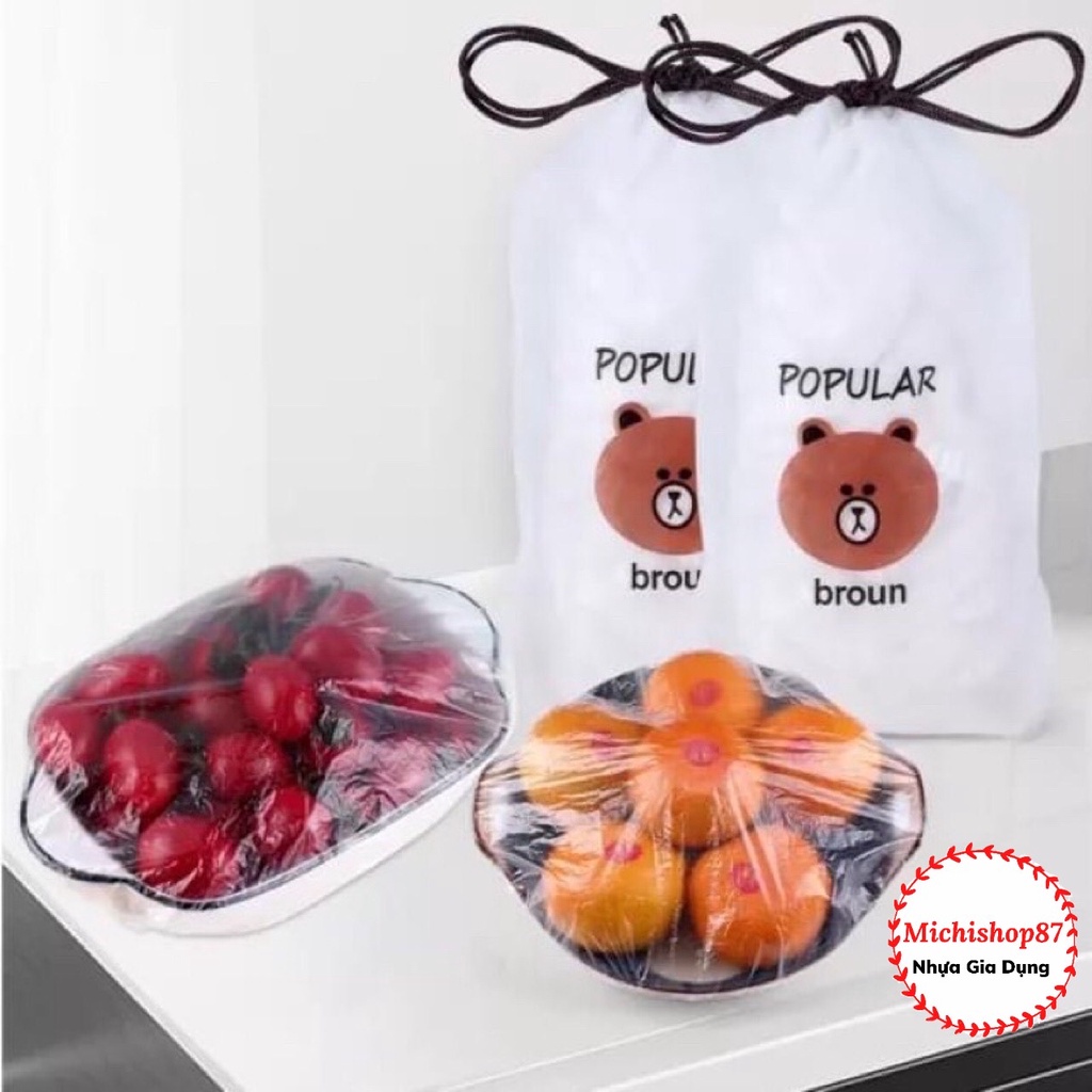 Màng Bọc Thực Phẩm Đa Năng Túi Gấu 100 Chiếc An Toàn Tiện Lợi, Màng Bọc Thực Phẩm Có Chun Co Dãn Siêu Dai Siêu Bền