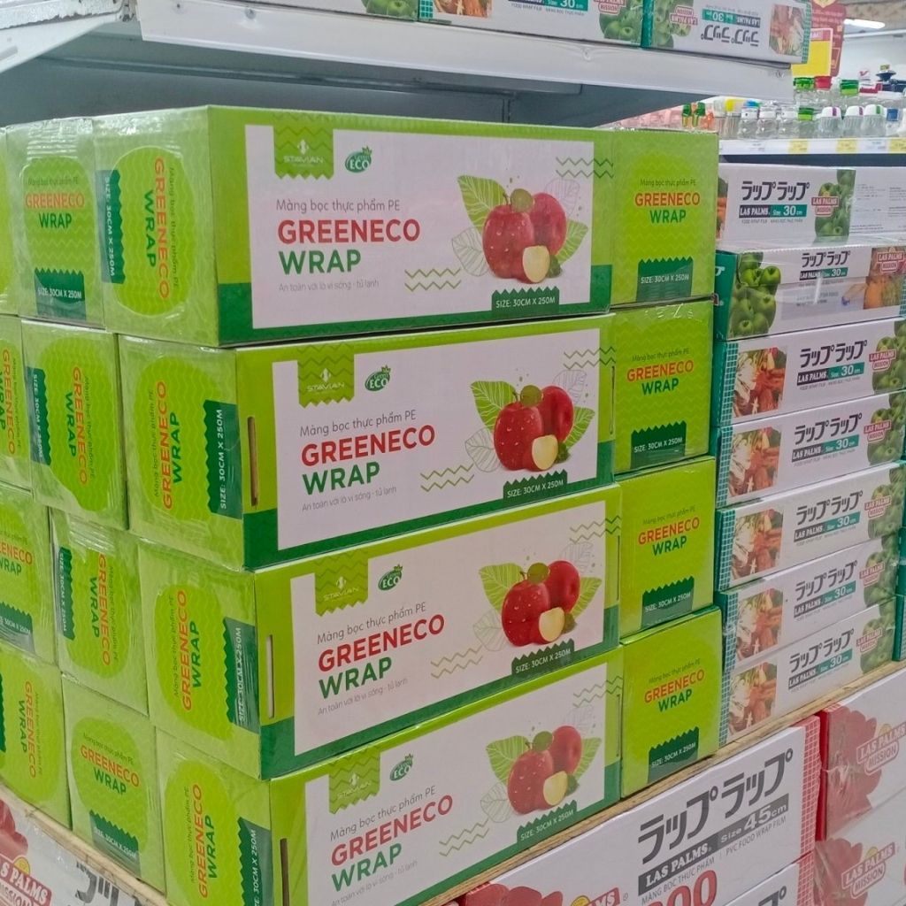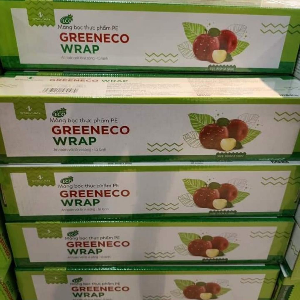 Màng bọc thực phẩm GREEN ECO, tự hủy sinh học, màng bọc thức ăn PE co giãn, an toàn thực phẩm VC21