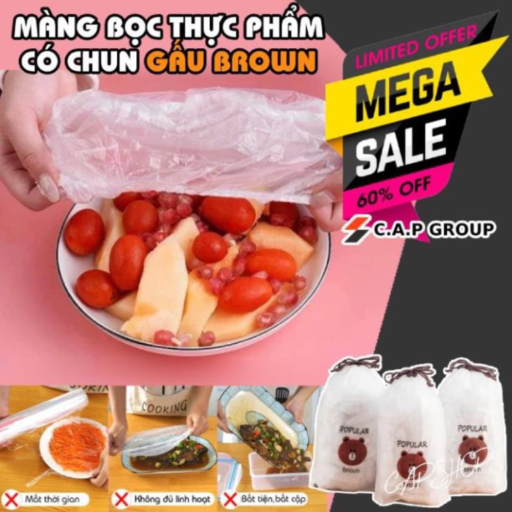 Màng bọc thực phẩm hình Gấu (túi ~100c) ✅FREESHIP✅ Co giãn tái sử dụng có chun bọc đồ ăn rất nhanh