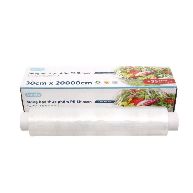 Được sản xuất từ chất liệu nhựa PE nên màng bọc an toàn cho sức khỏe. Màng bọc thực phẩm PE Inochi 30cm x 200m dùng để bảo quản thực phẩm tránh tiếp xúc với không khí, vi khuẩn, giữ cho thực phẩm tươi ngon lâu hơn.