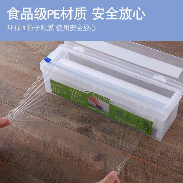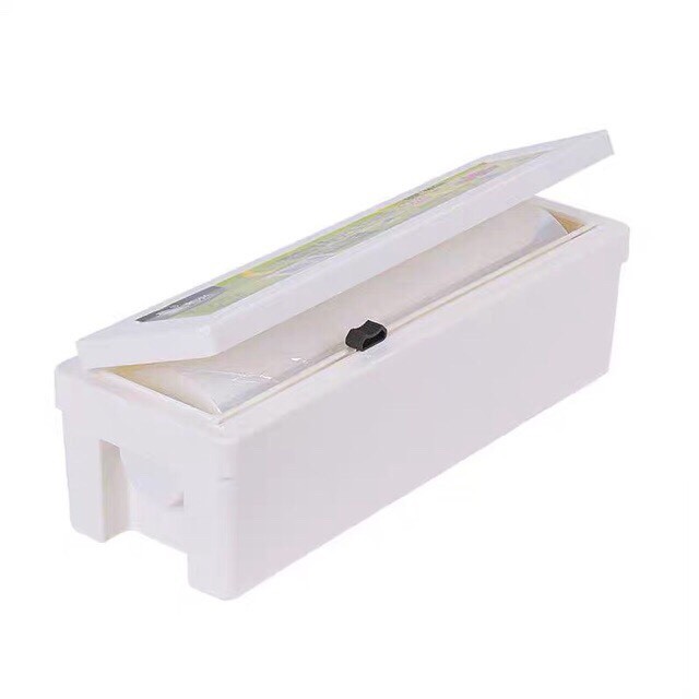 - Dao cắt gắn ở nắp hộp, tiện lợi để cắt màng bọc nhanh và vệ sinh.