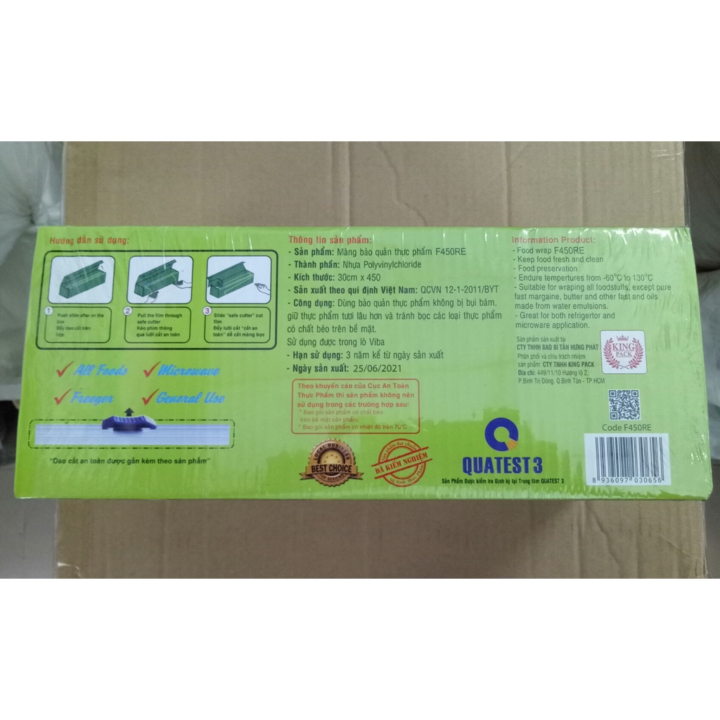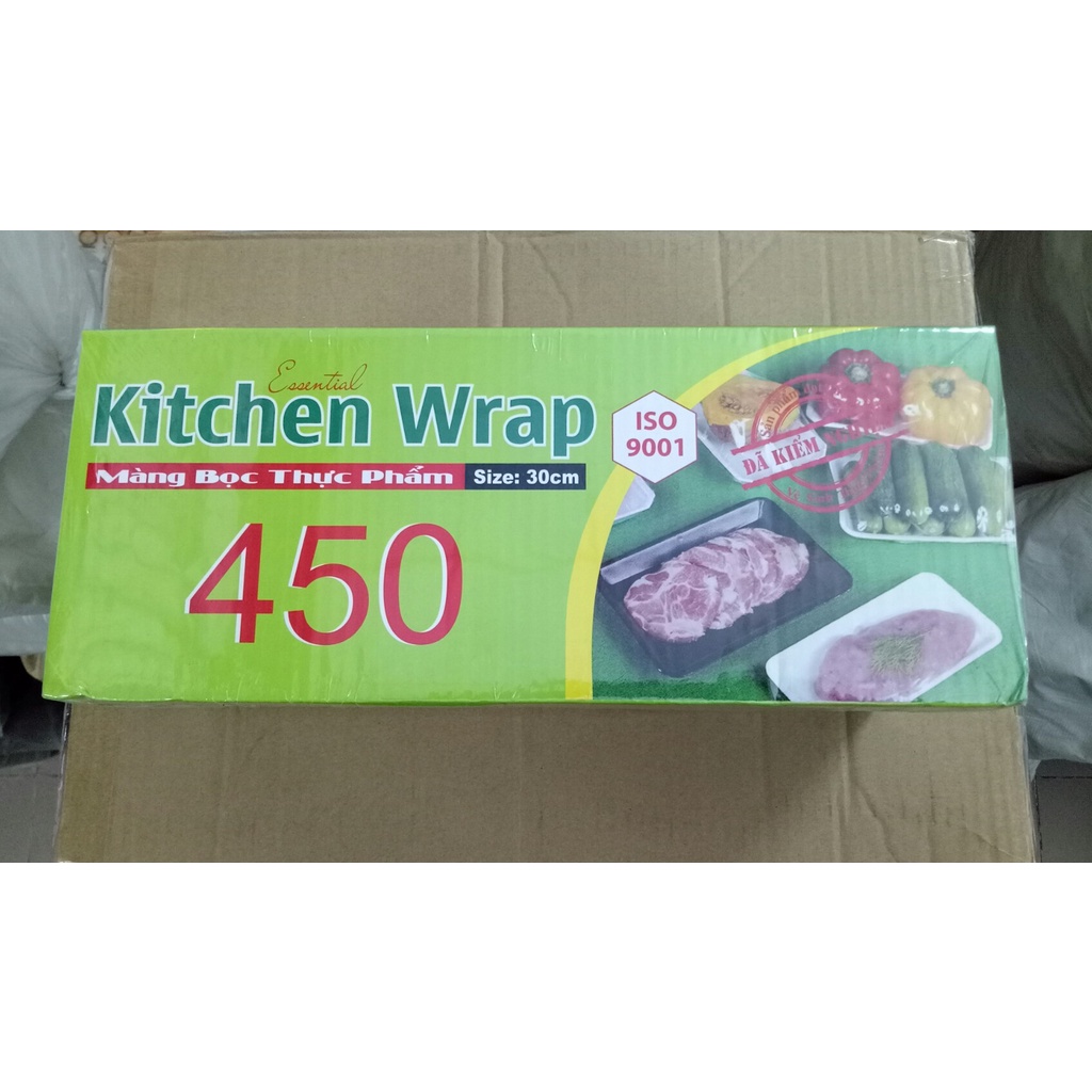 Màng bọc thực phẩm khổ 30cm (đủ loại 450, 250, 200)Thành phần: Nhựa Polyvinylchloride (PVC), có dao cắt đi kèm