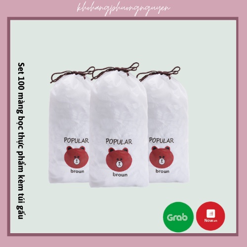 Màng bọc thực phẩm co giãn siêu dai có chun hình túi gấu set 100 chiếc
