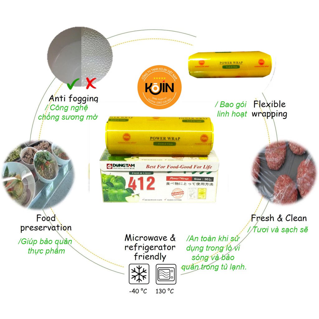 Giới thiệu Màng Bọc Thực Phẩm Kojin Dai Dính Nhãn Hiệu Power Wrap 412 Nhập Khẩu Malaysia
