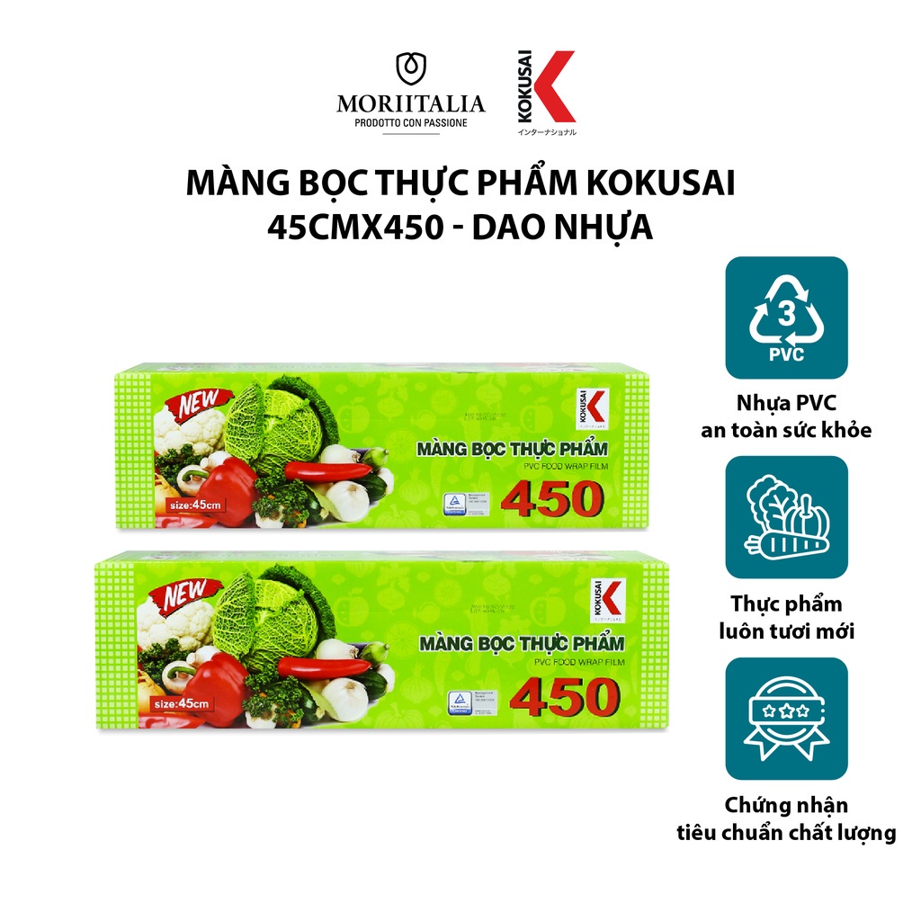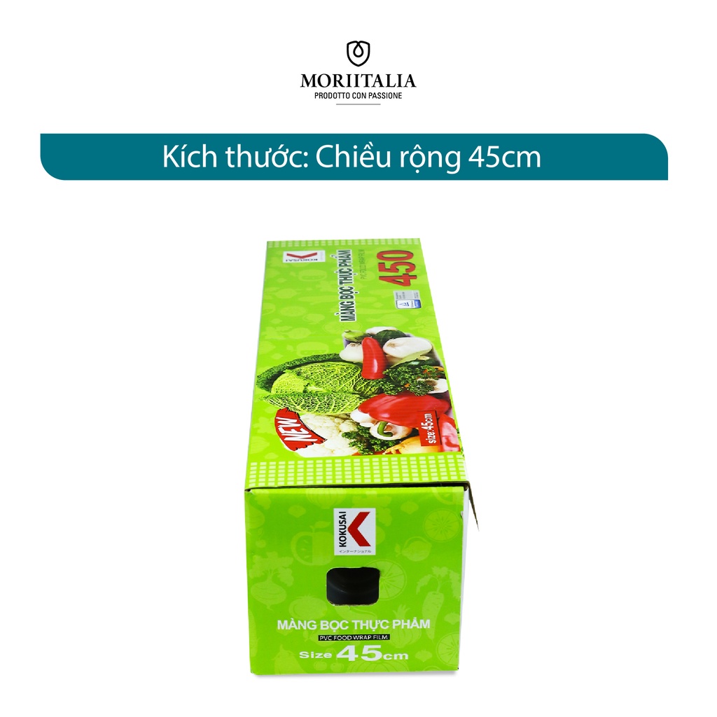 Màng bọc Thực Phẩm Kokusai có dao nhựa Moriitalia 45cm x 450m- MBTP00004541Kokusai là một cái tên được biết đến với những sản phẩm gần gũi với mọi nhu cầu người dùng. Đó là những sản phẩm được sản xuất theo tiêu chuẩn Nhật Bản, thân thiện với môi trường - an toàn cho sức khỏe.Khi bạn tìm kiếm một sản phẩm với nhu cầu thiết yếu như vậy, thì Kokusai là một gợi ý để đáp ứng nhu cầu đó.