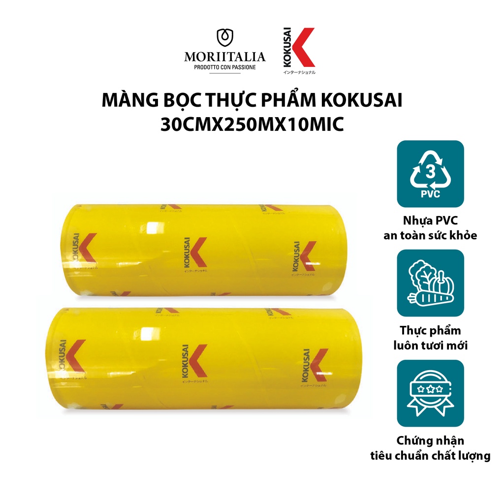 Màng Bọc Thực Phẩm Kokusai Chính Hãng Moriitalia 30cmx250mx10mic - MBTP00000060Kokusai là một cái tên được biết đến với những sản phẩm gần gũi với mọi nhu cầu người dùng. Đó là những sản phẩm được sản xuất theo tiêu chuẩn Nhật Bản, thân thiện với môi trường - an toàn cho sức khỏe.Khi bạn tìm kiếm một sản phẩm với nhu cầu thiết yếu như vậy, thì Kokusai là một gợi ý để đáp ứng nhu cầu đó.