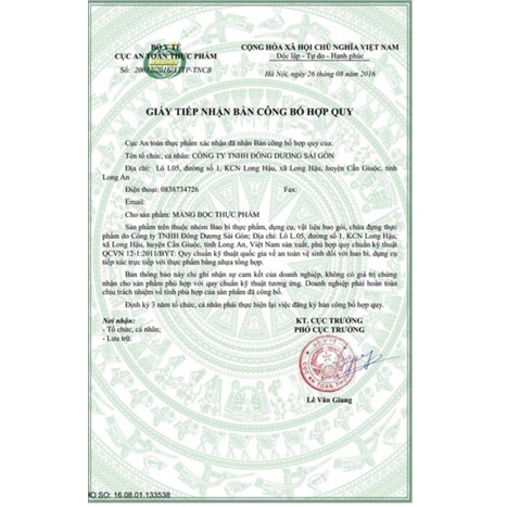 - Sản phẩm có chứng nhận của Cục An Toàn Thực Phẩm - Bộ Y Tế