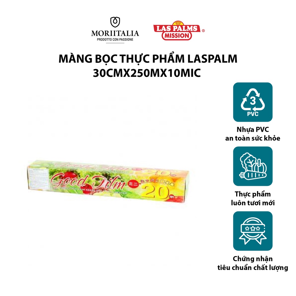 Màng bọc thực phẩm Laspalm Good Film chính hãng Moriitalia MBTP00070506Las Palms là thương hiệu màng bọc nổi tiếng khắp mọi nơi trên thế giới, được dùng trong các nhà hàng khách sạn cao cấp. Sản phẩm được sản xuất theo tiêu chuẩn quốc tế mang lại an toàn sức khỏe cho người tiêu dùng. Màng bọc thực phẩm Las Palm dẻo và dai hơn so với các loại màng bọc khác cùng ngành.
